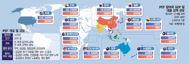 IPEF에는 미국과 한국·일본·호주·인도·태국·말레이시아·인도네시아·베트남·필리핀·싱가포르·브루나이·뉴질랜드·피지 등 14개국이 참여하고 있다. △무역 △공급망 △청정경제 △공정경제 등 4개 분야 중 이번에 합의가 이뤄진 공급망을 제외하고 나머지 3개 분야 협상은 여전히 진행 중이다.
