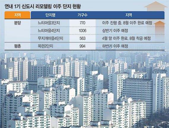현재까지 분당 3개 단지, 평촌 1개 단지 등 총 3330여가구가 리모델링 사업으로 이주를 마쳤거나 이주가 예정돼 있다.