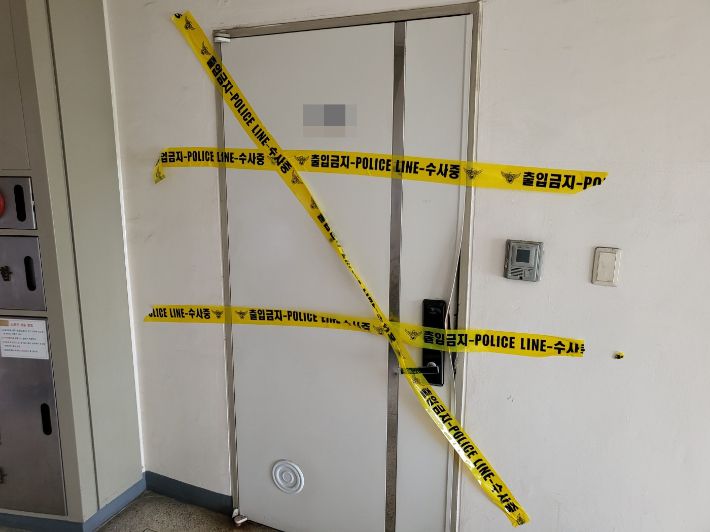 폴리스라인이 쳐진 서울 중랑구 아파트 사건 현장. 연합뉴스