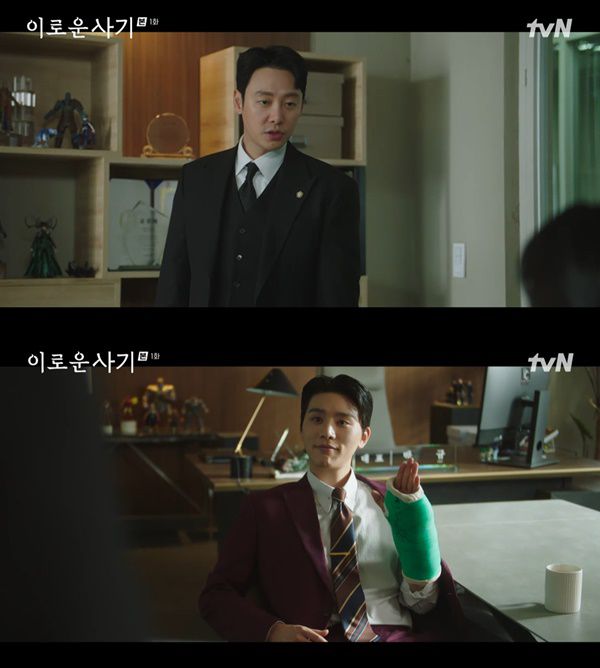 29일 저녁 첫 방송된 tvN 새 월화드라마 '이로운 사기'에서는 한무영(김동욱)의 의뢰인으로 재벌 2세(김우석)가 등장했다.