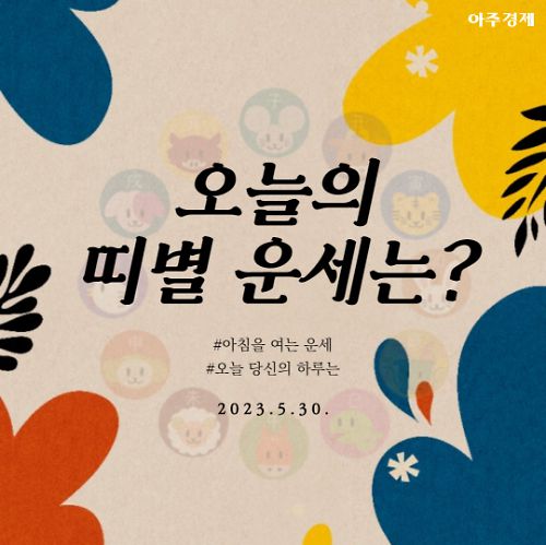 '오늘의 띠별 운세' 2023년 5월 30일 (화요일·음 4월11일) 운세는?