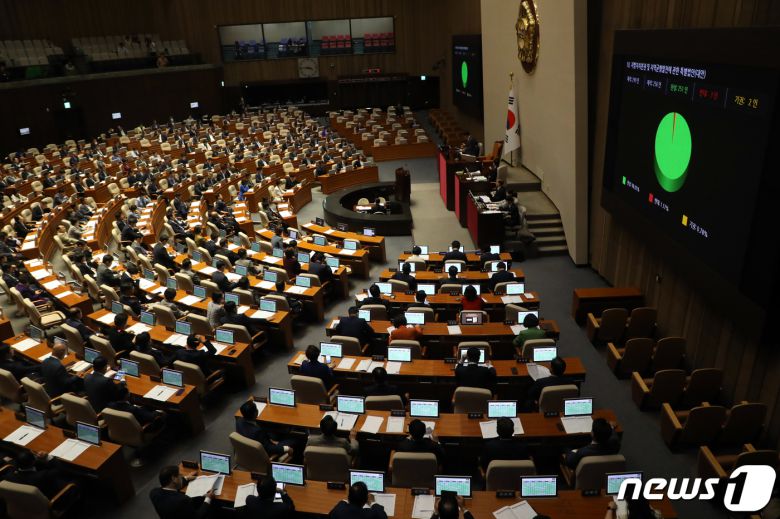 25일 서울 여의도 국회에서 열린 제406회국회(임시회) 제1차 본회의에서 지방자치분권 및 지역균형발전에 관한 특별법안이 통과되고 있다. 2023.5.25/뉴스1 ⓒ News1 황기선 기자