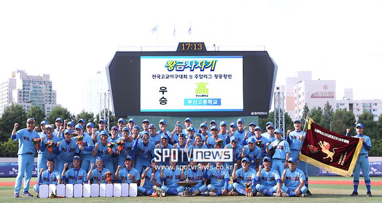 부산고는 29일 목동야구장에서 열린 제77회 황금사자기 전국고교야구대회 겸 고교야구 주말리그 왕중왕전 결승전에서 선린인터넷고를 12-3으로 누르고 정상에 올라섰다. 이날 선발 등판한 성영탁은 6이닝 5피안타 1피홈런 3볼넷 12탈삼진 3실점(2자책점)을 기록하며 부산고의 우승을 이끌었다.