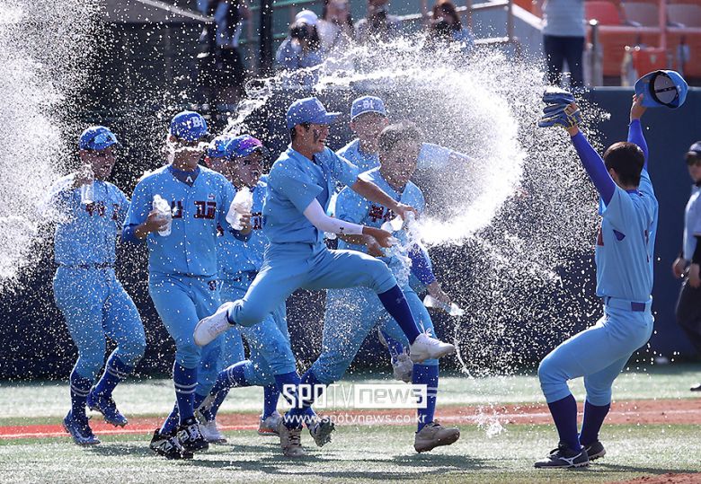 황금사자를 품에 안은 성영탁. 우승 소감으로 가장 먼저 “동문 선배들의 많은 지원이 있었기 때문에 우승할 수 있었다. 훈련 환경이 정말 많이 좋아졌다. 야구를 더 잘할 수 있게 만들어줬다”며 선배들을 향해 감사 인사를 전했다.