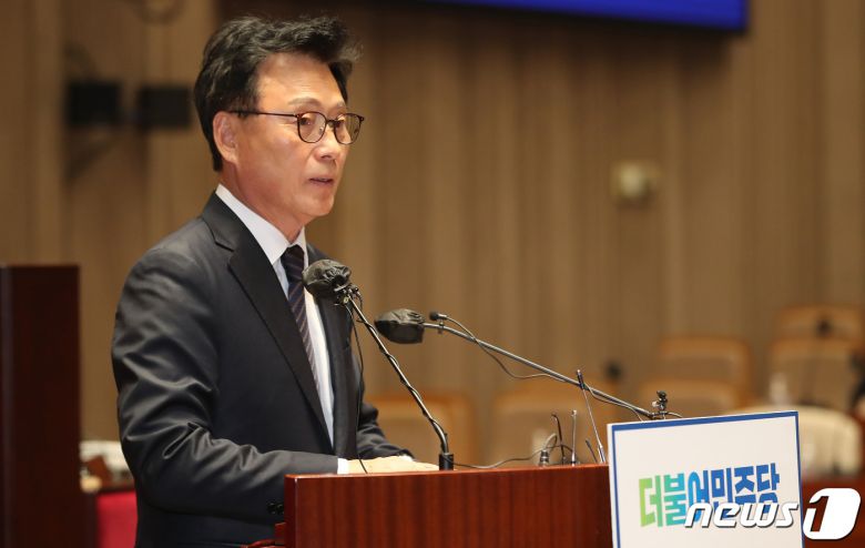 박광온 더불어민주당 원내대표가 30일 오후 서울 여의도 국회에서 열린 의원총회에서 모두발언을 하고 있다. 2023.5.30/뉴스1 ⓒ News1 임세영 기자