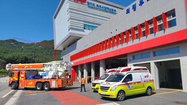 경기 의정부소방서 본서에 응급출동을 마친 구급차가 복귀하고 있다. 이종구 기자
