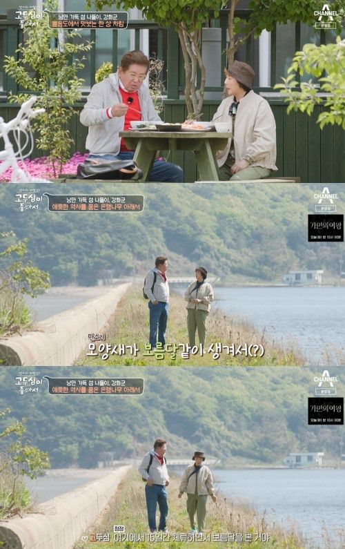 고두심은 김용건에 “(조선)인조 때 어떤 장군이 사신으로 가다가 풍랑을 만나서 여기에 체류하게 되셨다. 그때 여기서 보름달을 보셨다”라며 볼음도의 이름이 어떻게 지어졌는지 유래를 설명했다.