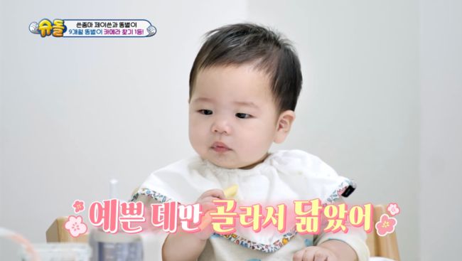 똥별이는 카메라를 보며 계속 웃음을 지었다. 이어 똥별이는 이유식을 먹기 시작했다. 홍현희는 “준범이는 다 잘 먹어서 너무 예뻐요”라며 기분 좋은 목소리를 냈다. 제이쓴은 밤늦게 와서도 이유식을 만드는 홍현희를 보고 감동했다고 밝혔다.