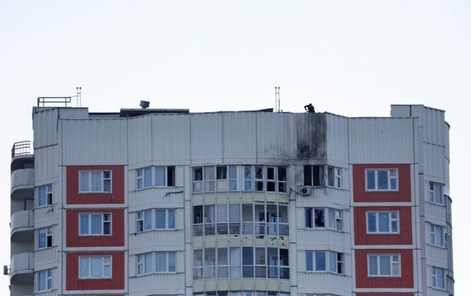 드론 공격으로 손상된 러시아 모스크바 아파트/로이터=뉴스1 |