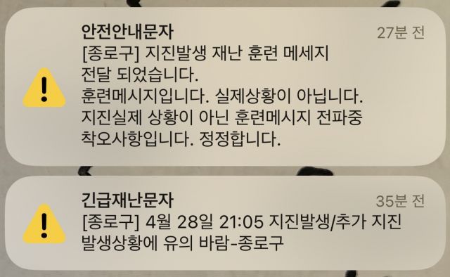 재난문자 오발송 사례는 올해 들어서도 꾸준히 발생하고 있다. 지난 1월 9일 강화도 해상에서 규모 3.7 지진이 일어났을 때 한밤 중에 요란하게 울린 재난문자 알림에 많은 수도권 주민이 잠에서 깼다가 가슴을 쓸어내리기도 했다. 4월 28일 오후 9시 38분경에는 서울 종로구가 지진 발생을 알리는 재난문자를 보냈다가 이를 정정했다. 재난 대응 훈련을 하던 중 실수로 재난문자가 발송됐다는 게 종로구의 설명이었다.