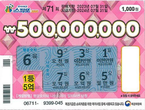 스피또1000 71회차 1등 당첨 복권. /동행복권 홈페이지 |