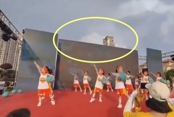 중국 유치원생들이 어린이날 행사 기념 무대에 오른 가운데 뒤쪽 스크린이 무너져 깔리는 사고가 발생했다. 신경보 SNS 캡처