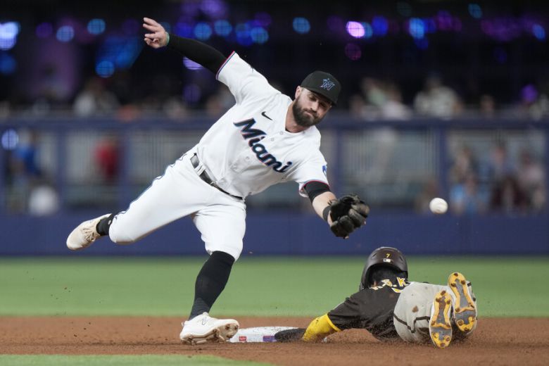 김하성은 1일(한국시간) 미국 플로리다주 마이애미 론디포파크에서 열린 ‘2023 메이저리그’ 마이애미 말린스전에 1번타자 3루수로 선발 출전했다. 3타수 무안타 1볼넷 1도루로 시즌 타율은 종전 0.245에서 0.241로 내려갔다.