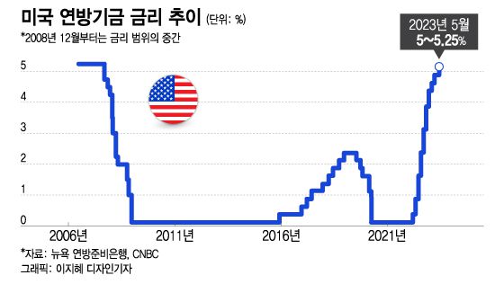 아울러 6월 금리 인상을 건너뛴다면 연준 인사들은 7월에 금리를 0.25%포인트 인상하는 것이 적절하다고 생각할 수 있다며 이 경우 연준 인사들의 올해 최고 금리 전망치 중간값은 5.4%로 올라갈 것이라고 예상했다. 이는 22년만에 최고치다. 현재 금리는 5~5.25%이다.