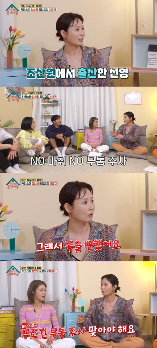 또한 김선영은 딸을 조산원에서 출산했다고 밝혀 모두를 놀라게 했다. 그는 "주변에 자연주의 출산을 추구하는 사람들이 많았다. 마취나 무통주사 안 하고 새벽에 불 다 꺼놓고 완전 조선시대 식으로 (딸을) 낳았는데 죽을 뻔했다"고 떠올렸다.