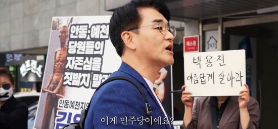 이른바 '개딸'로 불리는 더불어민주당 강성지지층을 향해 "대화하자"며 손을 내민 비명(非明)계 박용진 민주당 의원이 지난달 26일 안동에서 개딸들과 마주친 당일의 동영상을 올리며 "만나서 대화를 통해 민주당을 위한 서로의 역할을 찾자"고 촉구했다.