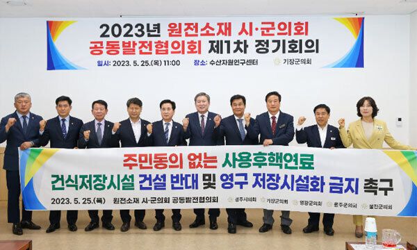 1일 경주시의회에 따르면 원전소재 시·군의회 공동발전협의회(회장 이철우)는 지난달 25일 부산 기장군 수산자원연구센터에서 '2023년도 제1차 정기회의'를 열고 '주민동의 없는 사용후핵연료 건식저장시설 건설반대 및 영구 저장 시설화 금지 촉구 결의안'을 채택했다.