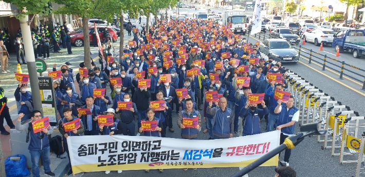 국민의힘 소속 서강석 송파구청장 규탄 시위에 나선 구청 노조. 독자 제공