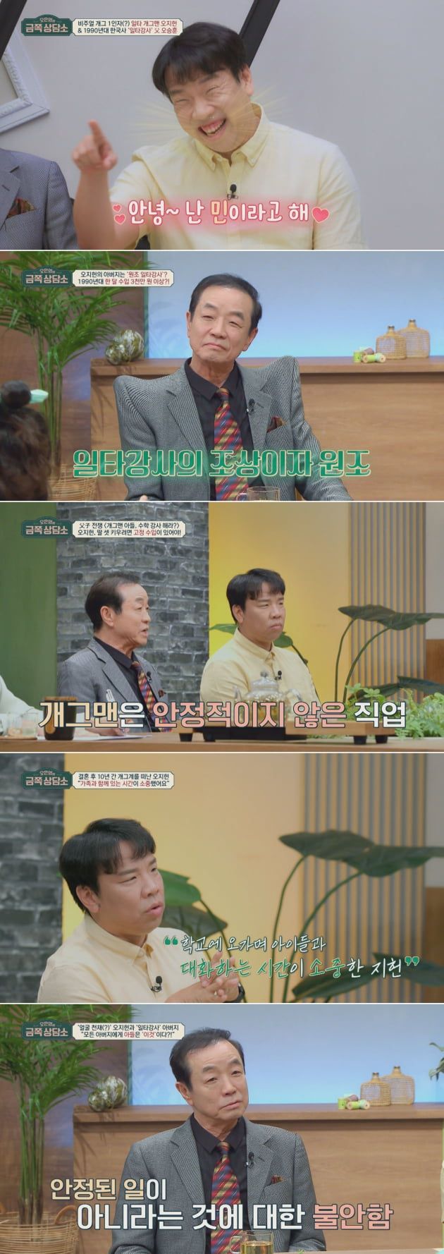 또한 이날 함께 상담소를 찾은 아버지 오승훈이 과거 ‘원조 일타강사’였던 이력도 밝혀진다. 90년대 국사계 바이블인 ‘홈런 국사’의 저자이자 ‘한국사 일타강사’였다는 오승훈. 그가 하루에 가르친 학생만 약 3천 명에 달하며 한 달 수입이 최대 3천만 원이었다고. 이에 오지헌은 아버지에게 개인 운전기사가 있었음을 증언하며, 본인 역시 어렸을 때 수영장 딸린 집에서 자랐다고 밝혀 ‘청담 키즈’다운 면모를 보인다.