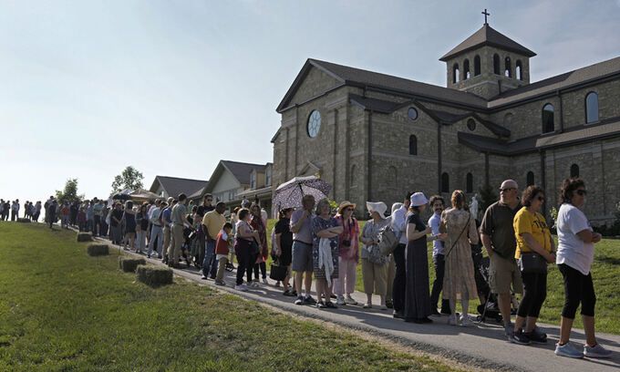 지난 5월 28일(현지시간) 미국 미주리주 한 마을의 수녀원 앞에서 사람들이 빌헬미나 수녀의 시신을 보기 위해 줄을 서서 기다리고 있다. AP연합뉴스