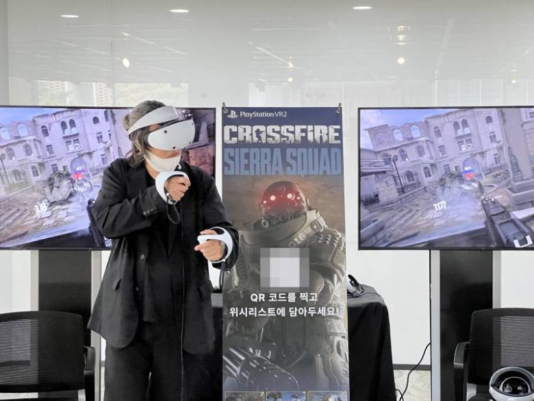 현장에서는 최근 발매된 PS VR2를 통해 게임을 체험할 수 있었다. 체험을 위해 플레이 영역 등 기본적인 세팅은 완료된 상태였으며, VR 헤드셋을 잘 맞게 조정하고 가상 세계로 접속했다.