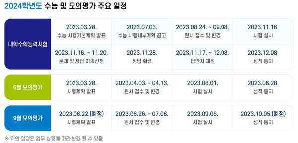 한편, 인천광역시교육청이 주관하는 7월 모의고사가 오는 7월 11일에 예정되어있으며, 한국교육과정평가원이 주관하는 9월 모의고사는 오는 9월 6일에 진행될 예정이다.