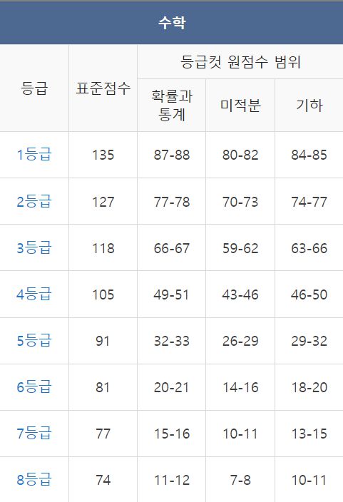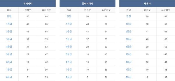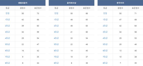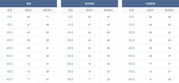 다음은 메가스터디에서 제공한 2일 오전 11시 기준 실시간 등급컷이다.