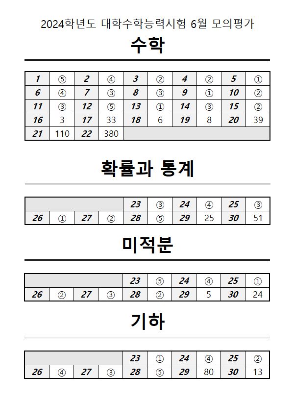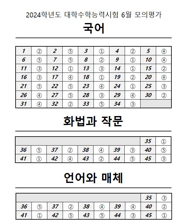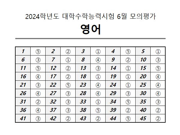 이번 6월 모의고사는 수능 연습 시험으로 시험의 성격이나 출제 영역, 문항 수 등이 모두 2024학년도 대학수학능력시험과 동일하다.