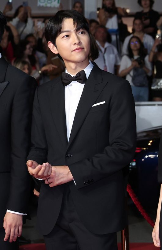 아내 케이티와 함께 레드카펫을 걷지는 못했지만 송중기의 첫 칸 레드카펫은 화려했다. 결혼반지를 끼고 아내, 곧 태어날 아이와 함께 했고, 여유로운 매너로 주목받았다.