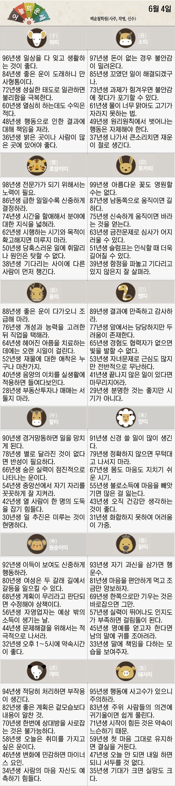 [재미로 보는 오늘의 운세] 6월 4일 (일요일)