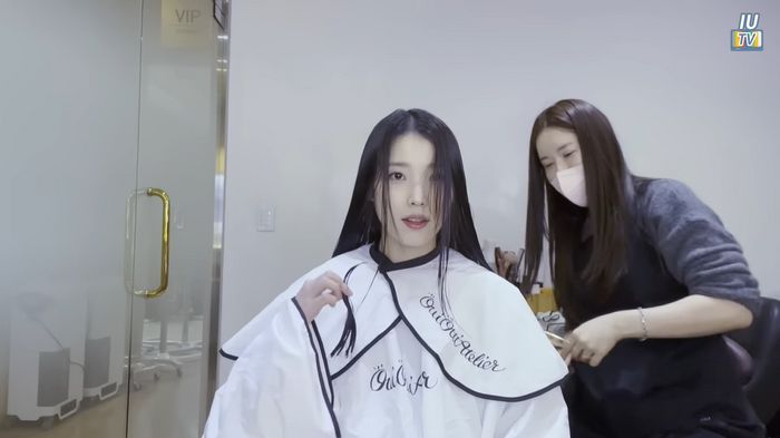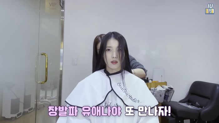 아이유는 “머리 자르는 모습은 처음 공개한다”라고 밝혔다. 브이로그를 찍게 된 데에는 헤어 디자이너의 추천이 있었다고.