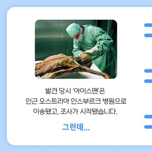 발견 당시 '아이스맨'이라고 불리던 이 시신은 인근 오스트리아 인스부르크 병원으로 이송됐습니다.