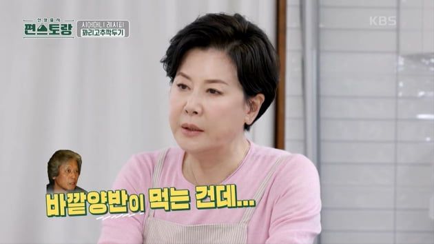 지난 방송에서 첫 등장한 박정수는 '트민할'(트렌드에 민감한 할머니) 활약을 이어갔다. 이날 박정수는 유행템 소금빵에 얼린 바나나를 넣고 오븐에 살짝 구워 먹는 조합을 소개했다. 여기에 쌀누룩을 활용해 만드는 발효 딸기 음료 레시피도 공개했다. 역시 ‘트민할’이라는 감탄이 나온 가운데 박정수는 ‘엄마의 정성’이 가득 담긴 메뉴로 반전을 줬다.