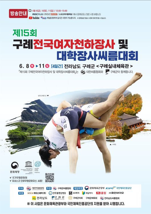 [OSEN=우충원 기자] 제15회 구례전국여자천하장사 및 대학장사씨름대회가 8일부터 11일까지 전남 구례군 구례실내체육관에서 개최된다.