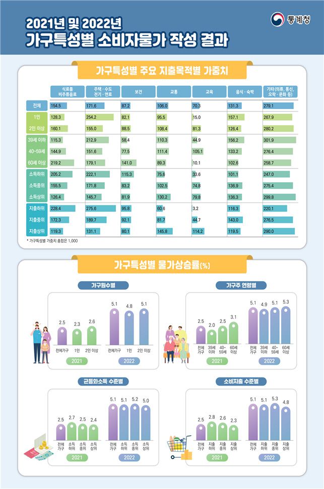 통계청 2021·2022년 가구특성별 소비자물가 발표