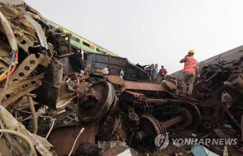 인도 열차충돌 참사…"뒤죽박죽 상태서 10∼15명씩 포개져"