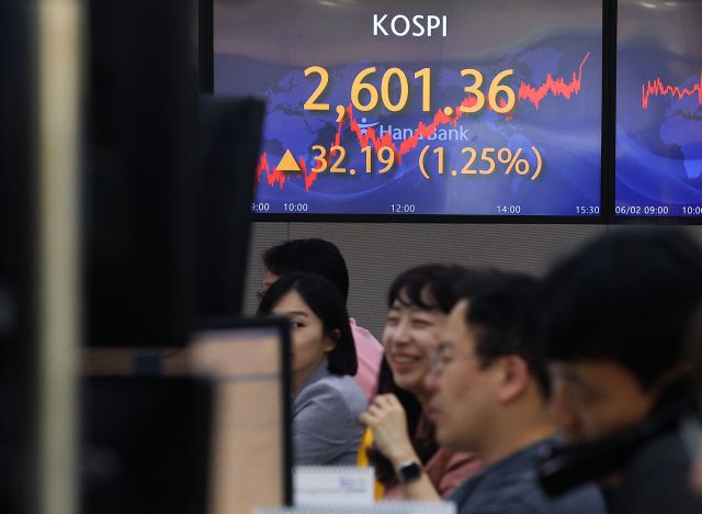 3일 한국거래소에 따르면 이번주(5월 30일~6월 2일) 코스피 지수는 직전 주(2558.81) 대비 42.55포인트(1.66%) 오른 2601.36에 거래를 마쳤다. 코스피지수가 2600을 넘겨 마감한 건 지난해 6월 9일 이후 약 1년만이다. 유가증권시장에서 외국인이 1조 2738억 원을 순매수하며 증시 상승을 이끌었다. 개인과 기관은 각각 7133억 원과 1조 907억 원을 내다팔았다. 코스닥자수는 전주 대비 24.83포인트(2.94%) 상승한 868.06에 마감했다.
