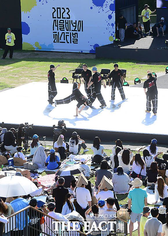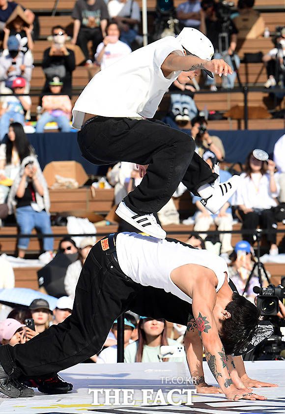 [더팩트ㅣ임영무 기자] 2023 서울비보이페스티벌이 3일 오후 서울 용산구 노들섬에서 열린 가운데 팀별 비보이 배틀이 펼쳐지고 있다.