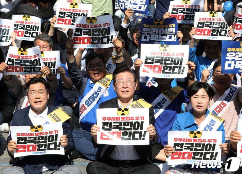 이재명 민주당 대표는 이날 오후 부산 서면에서 열린 '후쿠시마 오염수 방류 반대 영남권 규탄대회'에 참석해 윤 대통령을 향해 "대한민국의 영토를, 바다를 더럽히는 오염수 방출, 절대 안 된다고 천명하라"고 촉구했다.