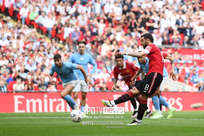 3일 밤 11시(한국시간) 런던 웸블리 스타디움에서 시작한 2022-23시즌 잉글랜드축구협회(FA)컵 결승이 팽팽하게 진행되고 있다. 맨체스터 시티가 13초 만에 선제 득점으로 앞서갔으나 맨체스터 유나이티드는 페널티킥으로 응수하며 전반을 1-1로 마쳤다.