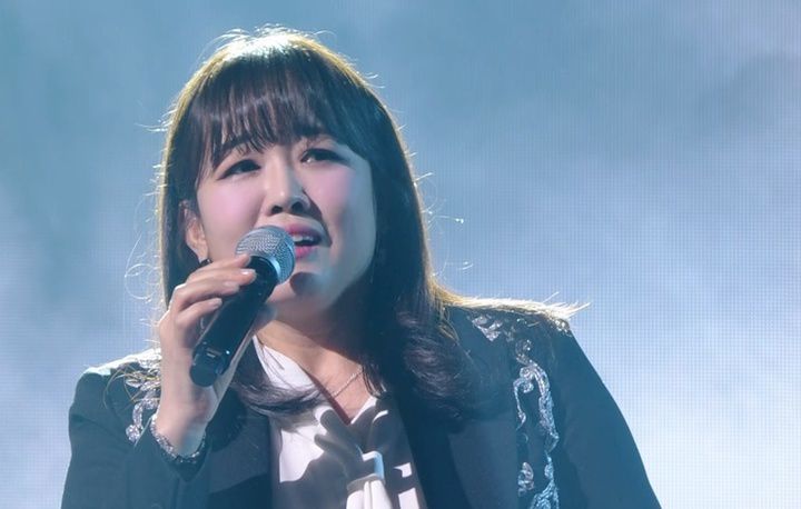 3일 오후 6시10분 방송한 KBS 2TV '불후의 명곡'(연출 박민정 박형근 신수정 이희성) 609회가 '아티스트 진성 편'으로 꾸며진 가운데 정미애는 한층 갸름한 얼굴로 시선을 끌었다.
