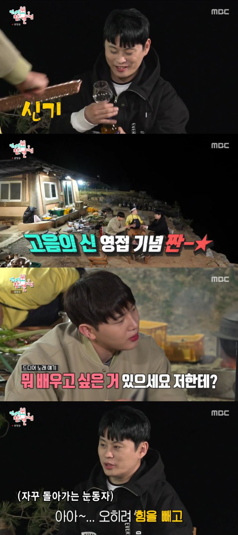 본격적으로 고기를 먹기 시작했다. 김민석은 자기가 먼저 송 실장에게 "배우고 싶은 것 있느냐"고 물었다. 송 실장은 기다렸다는 듯이 고음에 대해 물었다. 김민석은 고음을 낼 때는 힘을 살짝만 줘야 한다고 했다. 김민석은 "너무 세게 성대가 접지되면 목이 상한다"고 설명했다. 송 실장은 쓸데없는 기교가 너무 많은 것도 고민이라고 했다. 김민석은 여유가 있어야 한다고 했다.