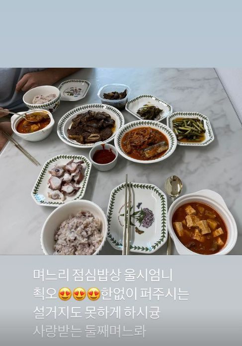 공개된 사진 속에는 황보라의 시어머니가 둘째 아들 부부를 위해 준비한 식사 모습이 담겨있다. 정성 가득한 한상차림이 보는 이들의 시선을 사로잡는다.
