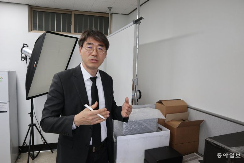 그의 사무실 한편에 놓인 유품들. 유족들이 박스에 넣어 보내면 일일이 열어보고 촬영하고 분석하는 과정을 거친다. 부산=서영아 기자 sya@donga.com |