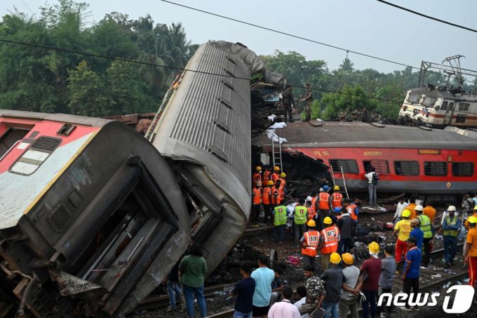 지난 3일(현지시간) AFP통신에 따르면 전날 오후 7시20분쯤 인도 오디샤주 주도 부바네스와르에서 200km 떨어진 발라소르에서 열차 3대가 충돌했다.