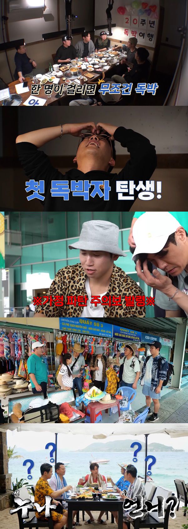 비치룩으로 갈아입은 5인방은 냐짱 바다에서 패러세일링 등 짜릿한 수상레저와 물놀이를 즐겼다. 미니 비치 뷰를 바라보며 베트남에서의 첫 만찬을 만끽했다. 신나게 먹방을 즐기던 이들은 "근데 누가 결제할지 몰라"라며 엄습해오는 불안감을 가감 없이 드러냈다. "빨리 독박자를 정하자"는 장동민의 발언에 김준호는 "벌써? 음식 먹은 거 얹힐 것 같은데"라며 초조해했다.