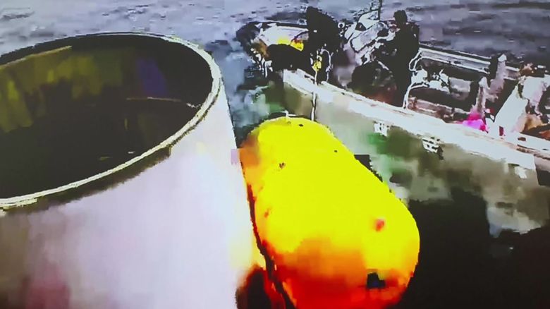 군 당국이 서해 상에 추락한 북한 우주발사체 동체 잔해 일부에 대한 인양 작업을 닷새째 이어가고 있습니다.