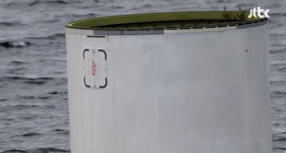 합동참모본부는 지난달 31일 우리 군이 아침 8시 5분쯤 서해 어청도 서방 200여㎞ 해상에서 북한 우주 발사체의 일부로 추정되는 물체를 식별해 인양했다고 밝혔다. 〈사진=JTBC 방송화면 캡처〉