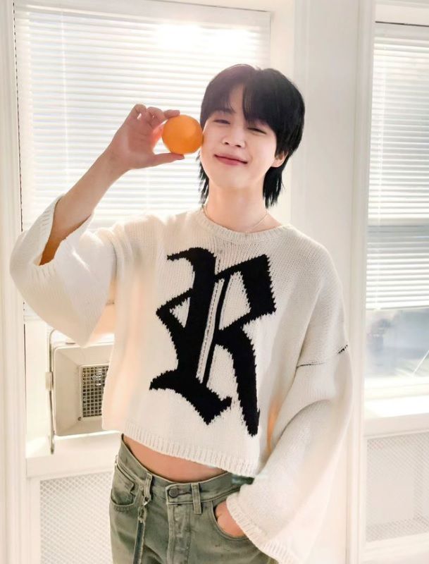 공개된 사진은 귤을 들고 포즈를 취하고 있는 그의 모습. 화사한 햇살 아래 흰 니트를 입고 과즙 미소를 뽐내는 청순한 지민의 모습이 시선을 모은다.