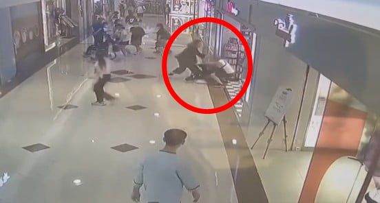 2일(현지 시각) 오후 5시쯤 홍콩 다이아몬드힐에 위치한 플라자 할리우드 쇼핑몰 3층에서 39세 남성 A씨가 22세, 26세 여성을 수십차례 칼로 찔러 피해 여성들이 사망했다. 사진은 온라인에 유포된 사건 현장이 담긴 영상. /온라인 커뮤니티 |